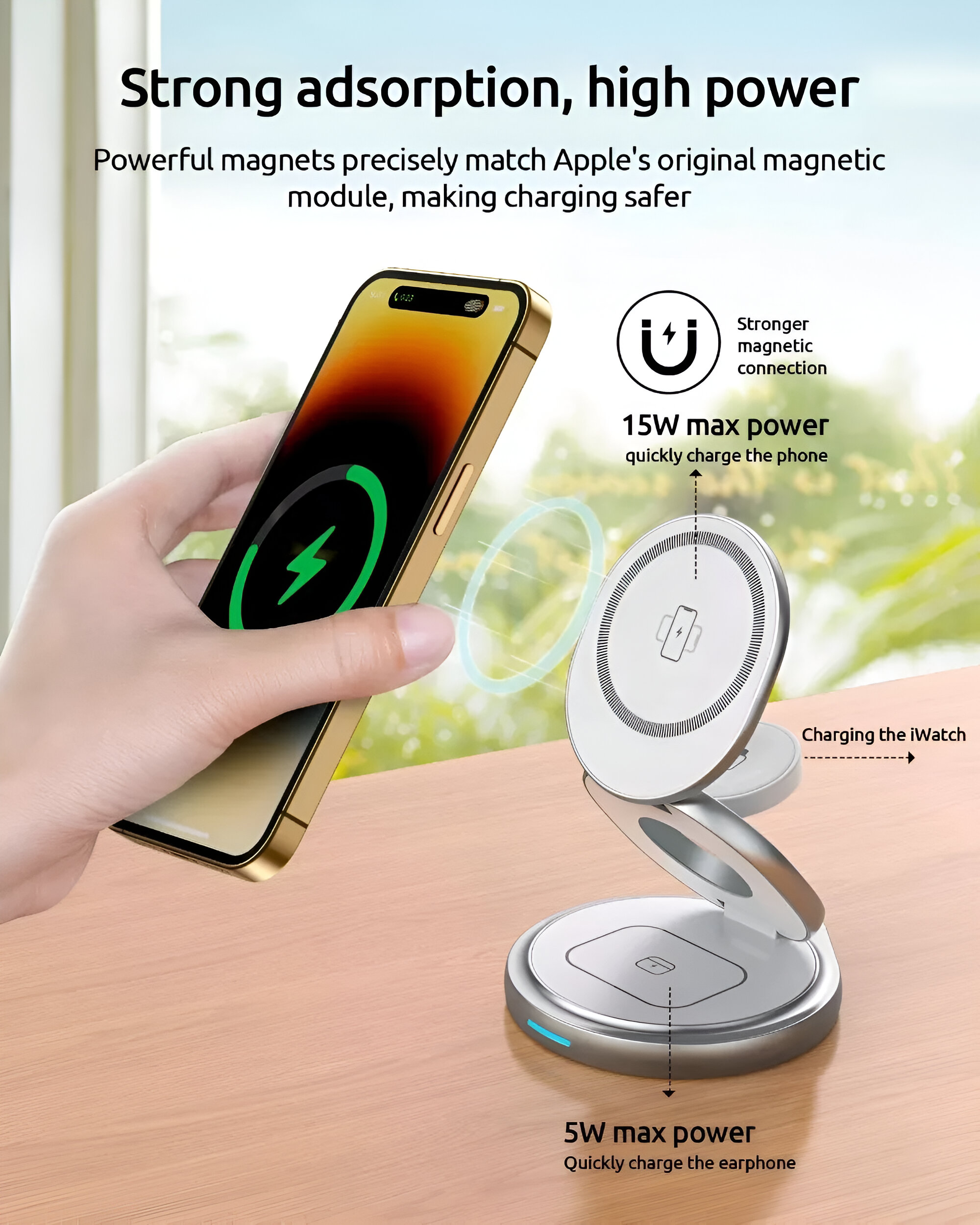 This 3-in-1 charger has been a lifesaver. The magnetic charging is super convenient and the folding stand feature is perfect for video calls!