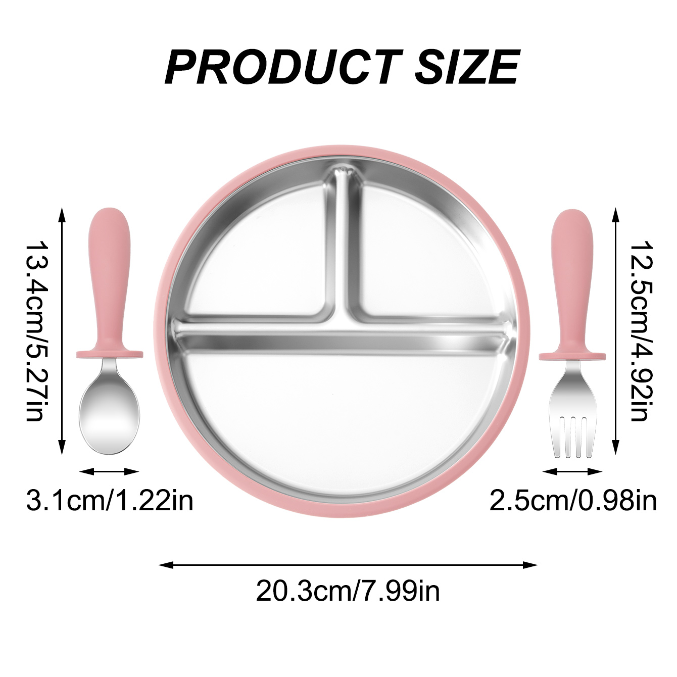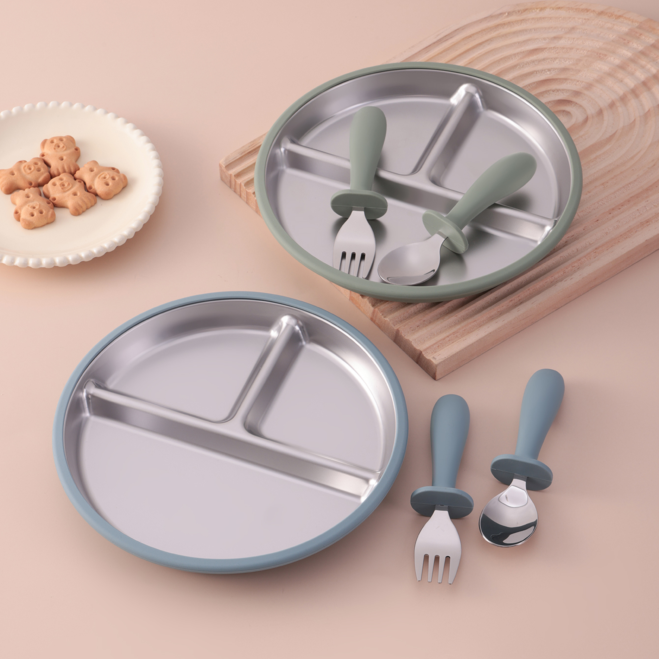 This set includes a stainless steel plate, fork, and spoon—all sized just right for tiny hands and mouths. The plate features smooth edges and a practical shape to hold a variety of foods, while the fork and spoon have gentle silicone handles for an easy grip. Perfect for babies aged 6 months to 6 years, this set supports your child’s journey toward self-feeding with confidence and ease.