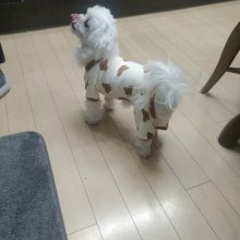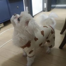 This jumpsuit is simply adorable! My fur baby looks so cute and cozy in it. The color block design adds a stylish touch, while the bear print gives it a playful vibe. Perfect for chilly walks!