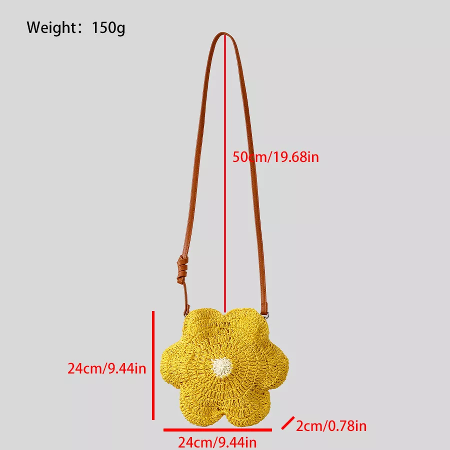 The charming floral shape and natural texture give this bag a uniquely artisanal feel—no two are exactly alike. Whether worn over the shoulder or across the body, the adjustable strap (approximately 19.7 inches long) ensures comfort and versatility. The soft structure and no-zipper open-top design allow for easy access to your essentials like sunglasses, sunscreen, wallet, and phone. It’s everything you need in one stylish, breathable, and eco-friendly package.