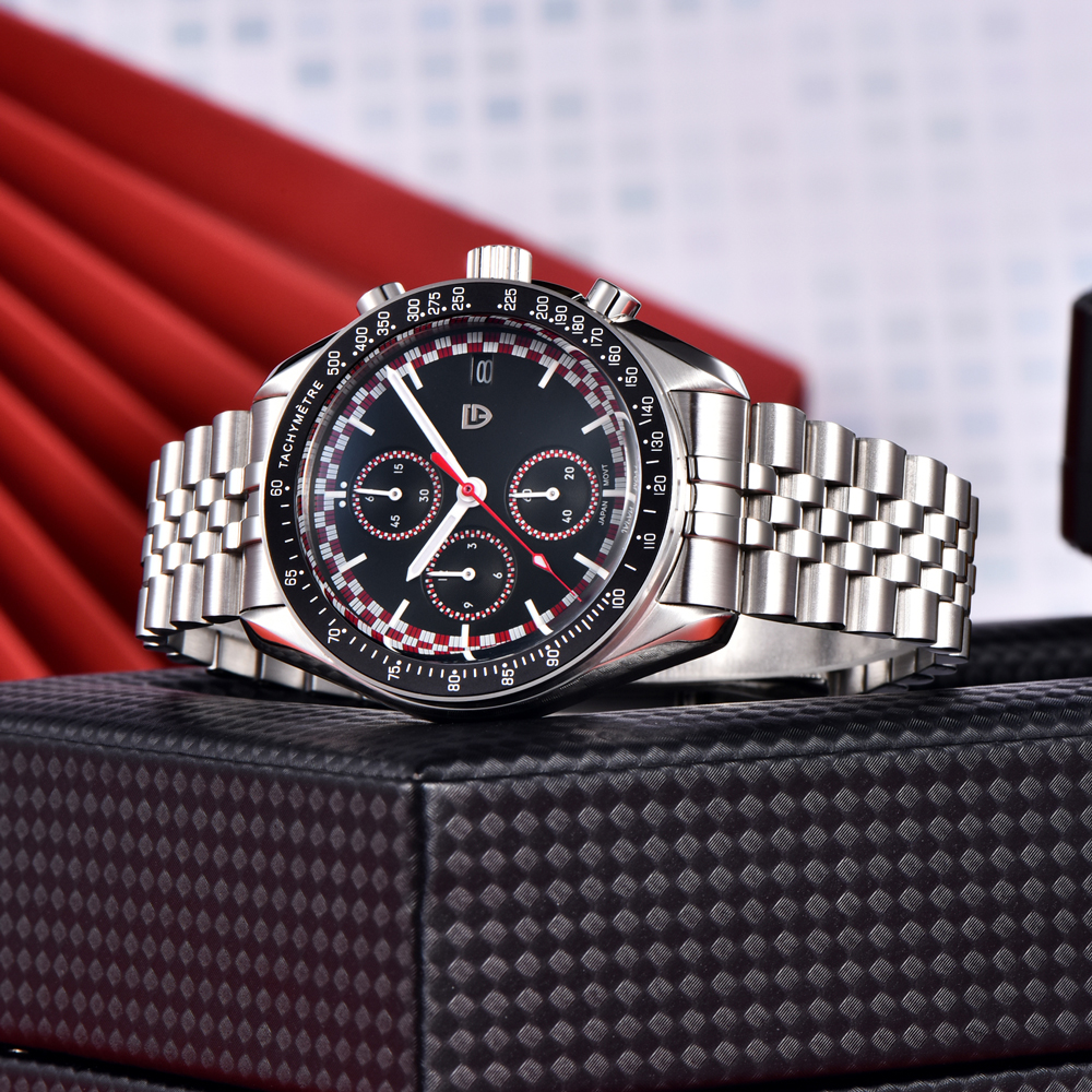 I've always been a fan of chronograph watches, and this one has surpassed all my expectations. The precision is absolutely phenomenal – the integrated stopwatch and calendar functions are incredibly accurate, making timekeeping an absolute breeze. But what sets it apart for me is the rugged durability. This watch isn't just built to last; it's designed with a stainless steel body that exudes luxury while also offering practical features like a screw-down crown and shock resistance - perfect for everyday wear or even more active use. The sapphire crystal glass face is another standout feature: scratch-resistant, ultra-clear, keeping your watch dial flawless and easy to read no matter the lighting conditions or how long you've worn it! Its 100M water resistance means I can go swimming without worrying about damaging my precious accessory – something not many other watches offer.