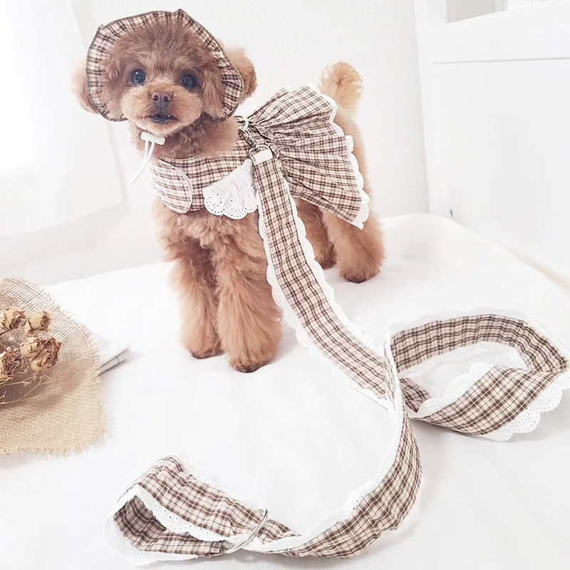 Crafted from soft, durable polyester blends, the harness dress provides a comfortable fit that won’t irritate your dog’s skin. The classic plaid pattern gives it a timeless charm, while the easy-to-use buckle closure makes dressing up quick and hassle-free. With its vest-style harness design, it distributes pressure evenly for safer walks — no more tugging on delicate necks. The set includes a matching leash and a charming little hat to complete the look, making it a must-have for dog lovers who adore stylish outings with their pets.