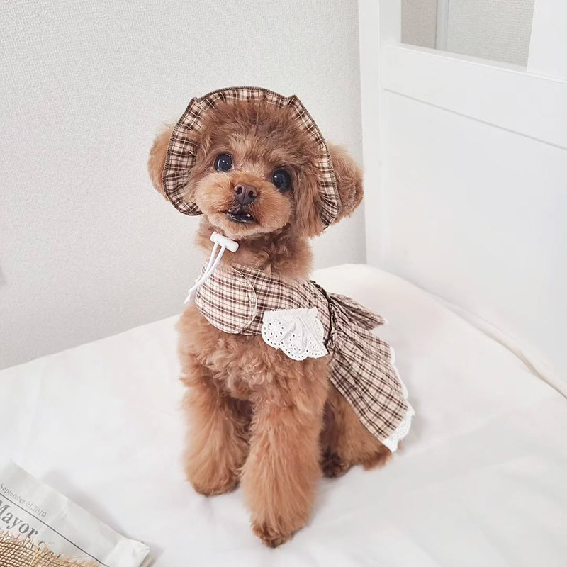 Love this plaid harness dress and leash combo! It's adorable, comfortable for my pup, and the quality is top-notch. The hat adds a cute touch too. 😍