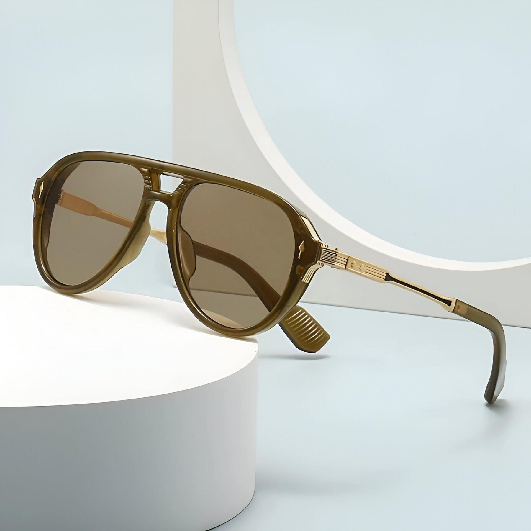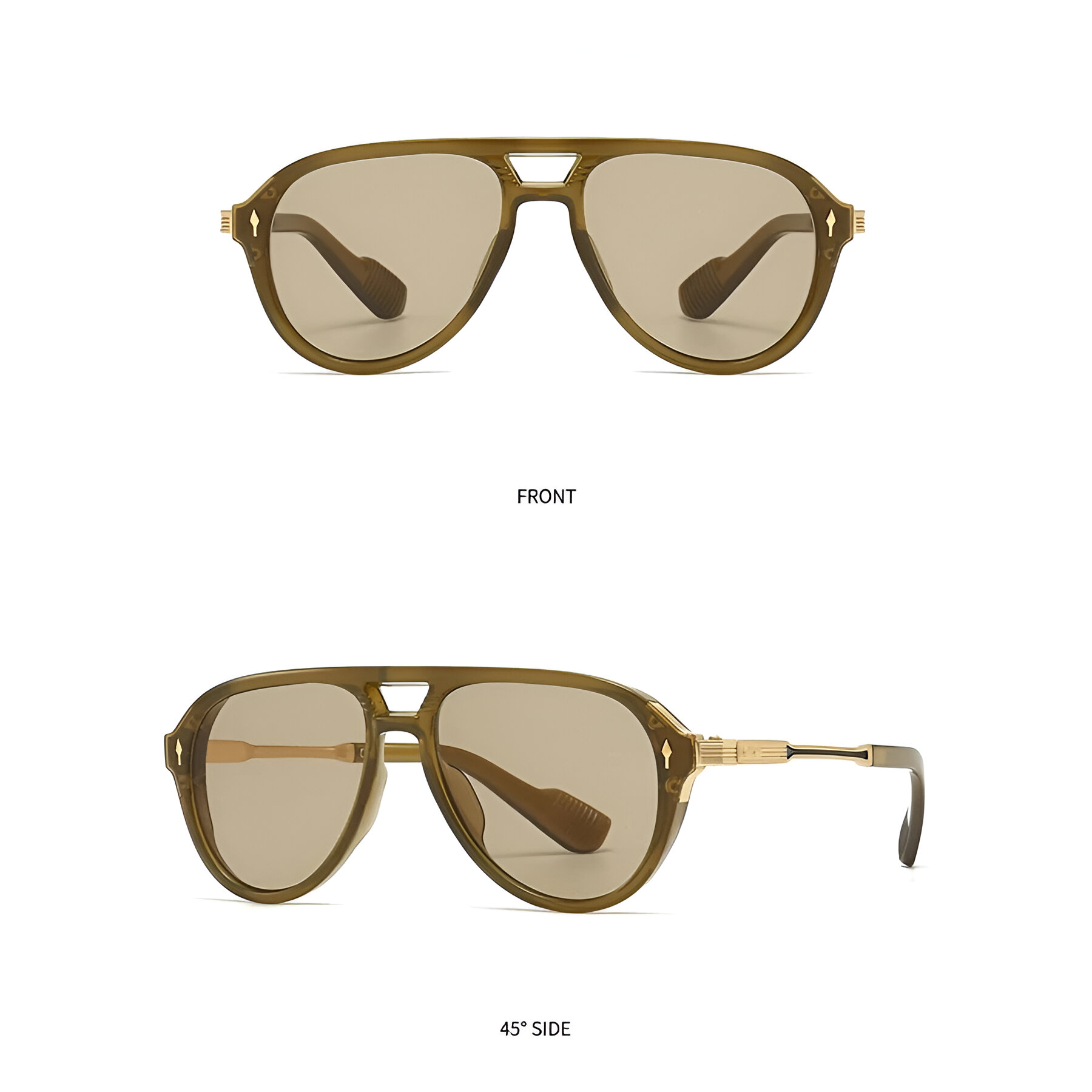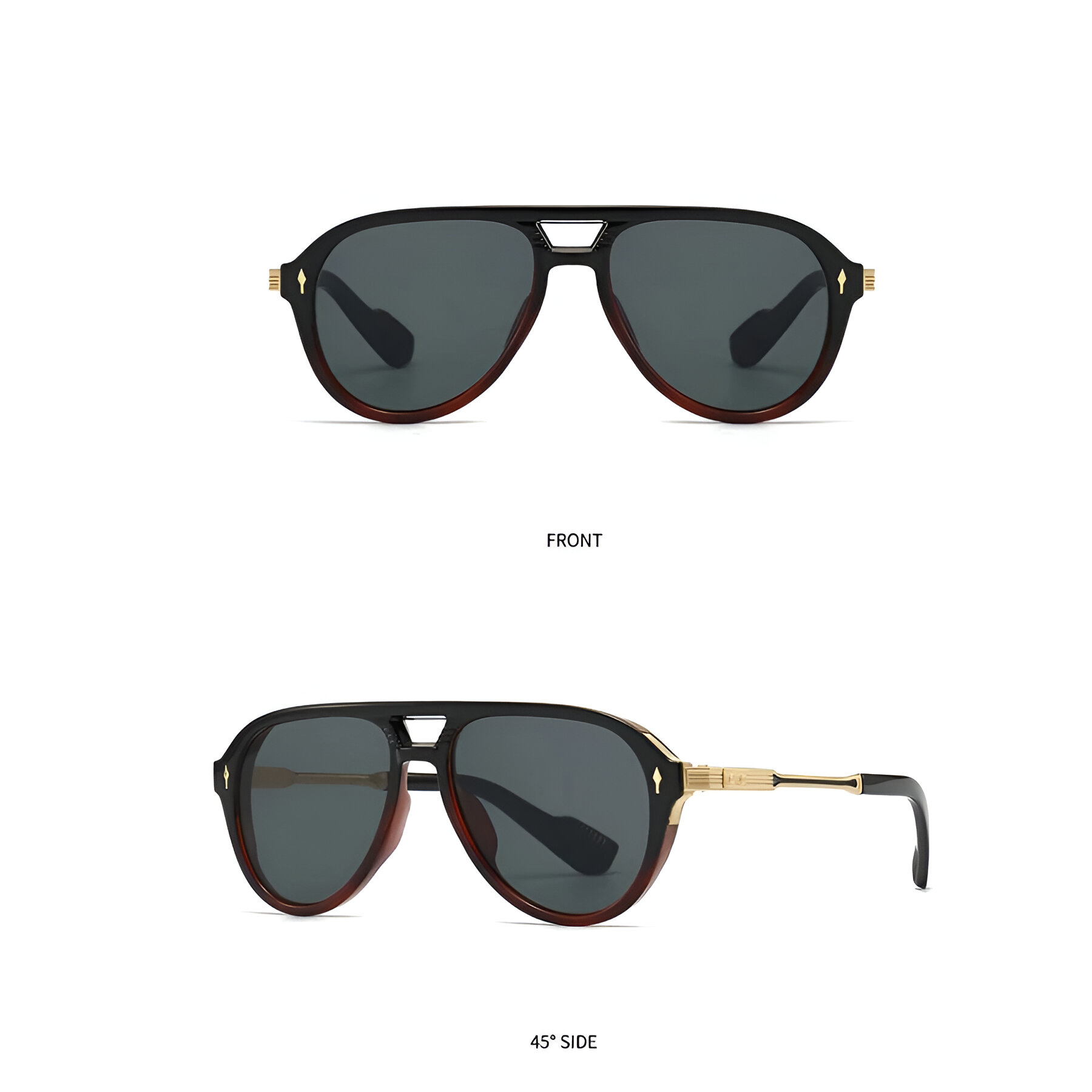 These sunglasses are truly a class apart. The double bridge pilot design is not only stylish but also adds an element of edginess to my look. I love how they've combined the retro vibe with a contemporary twist, making them perfect for any occasion - be it casual or sporty. The polycarbonate frame is incredibly durable and lightweight which makes them comfortable for extended wear. Plus, the UV400 protection ensures my eyes are shielded from harmful rays during outdoor activities. All in all, these shades have become my go-to accessory!
