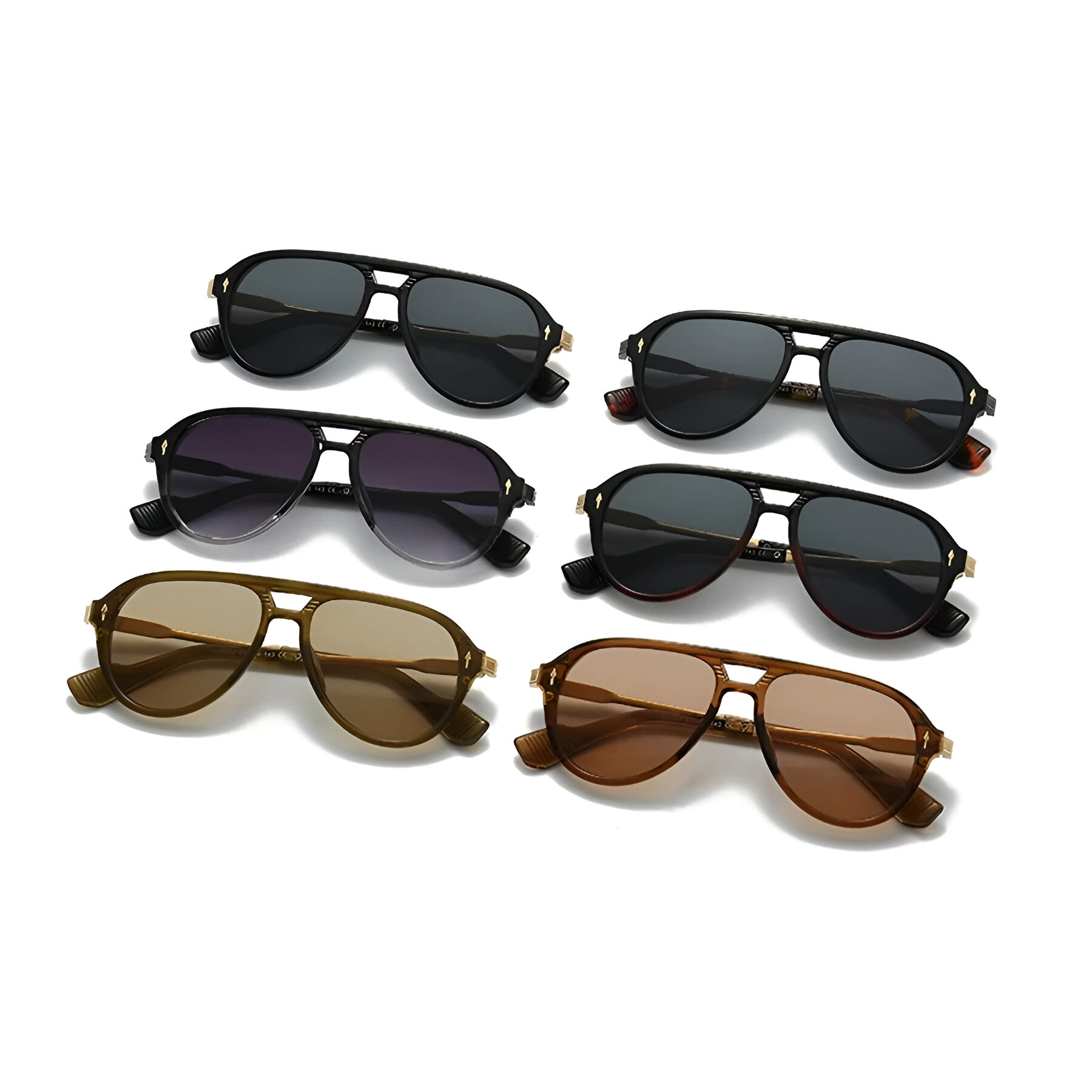 With their sleek double bridge and trendy rivet details, they’re more than just eyewear — they’re a statement. The classic pilot silhouette flatters both men and women, making them a must-have for anyone who loves a mix of casual and chic. Crafted for versatility, these shades transition effortlessly from daily wear to outdoor adventures, always keeping you protected and stylish.