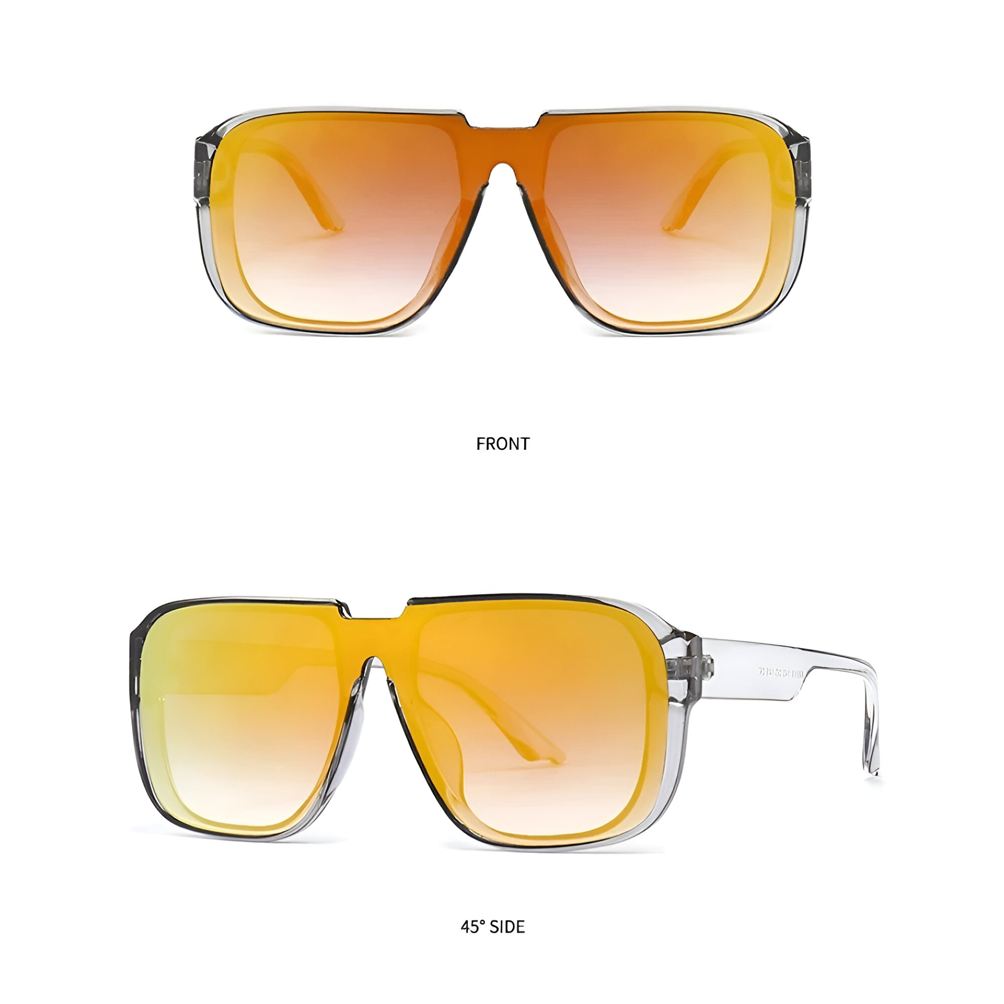 These sunglasses are a sight for sore eyes, literally and figuratively. The flat-top design is bold, retro, and makes an immediate statement. I love how they add a dash of personality to my everyday outfits. But it's not just about the looks - these shades also offer UV400 protection which is absolutely essential when you're out in the sun all day like me. They shield your eyes from 100% of harmful UV rays so you can enjoy your sunny adventures without worrying about damaging your vision. Plus, they're incredibly comfortable too! The polycarbonate frame ensures that these glasses are lightweight yet strong enough to withstand daily wear and tear. And let's not forget the mirror lenses - besides adding a stylish edge to these sunglasses, they reduce glare significantly making it easier for you to see clearly on bright days.