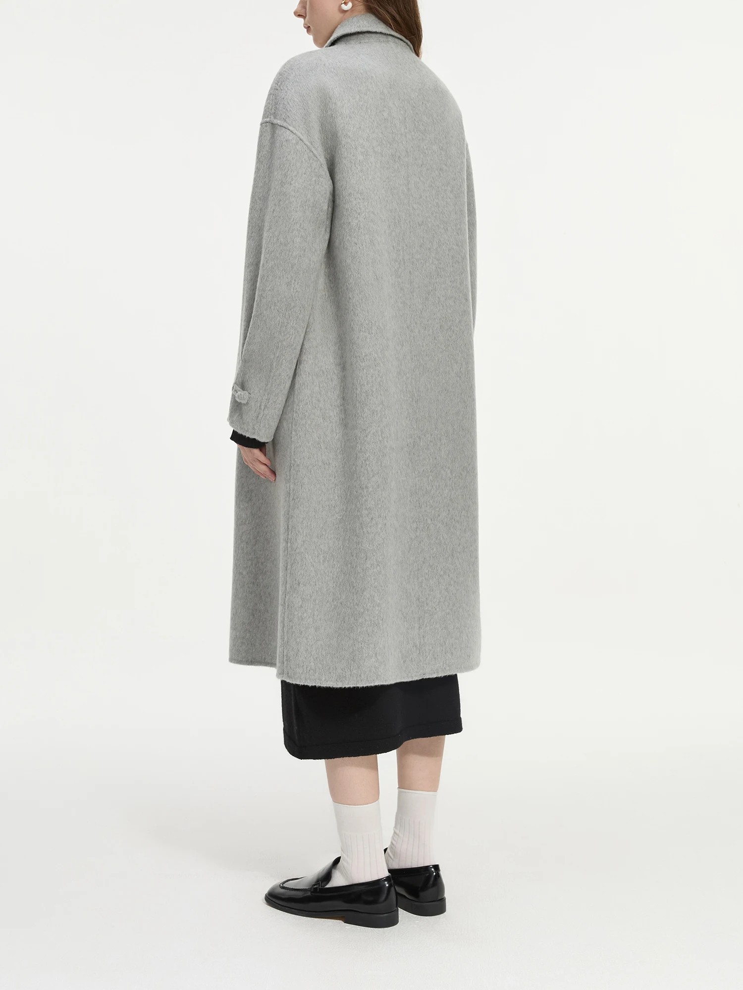 This stunning wool coat is more than just a jacket—it’s a statement piece. Whether you’re dressing up for a professional event or looking for a stylish coat to keep you warm during daily activities, this wool coat is designed to meet all your needs. Its luxurious feel and chic design make it the perfect choice for women who value both fashion and comfort. The solid color and long silhouette provide a flattering look, while the turn-down collar and drop-shoulder sleeves add a fashionable, relaxed vibe.